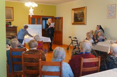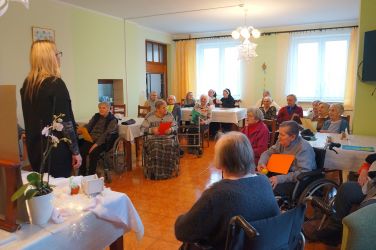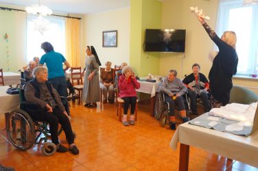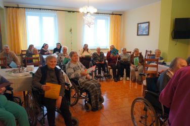 W dniu 15.12.18 podopieczni Domu Seniora mogli stać się uczestnikami interaktywnej bajki o ciepłej przyjaźni na dość zimnym biegunie. Historie foczki Gabrysi i jej towarzyszy przedstawiła p. Aleksandra Kowalik- córka p. Haliny, pensjonariuszki wraz ze swoim synem Wojtkiem. Nie tylko sama treść bajki ale również scenografia i własnoręcznie wykonane postaci przez p. Aleksandrę stały się tego dnia źródłem radości w Domu Seniora. Dodatkowo pensjonariusze zostali obdarowani kolorowymi choinkami wykonanymi przez uczniów Szkoły Podstawowej nr 27 w Bydgoszczy za co z całego serca dziękujemy.