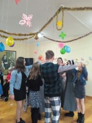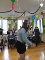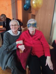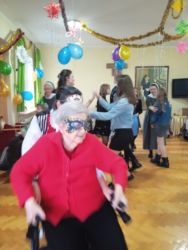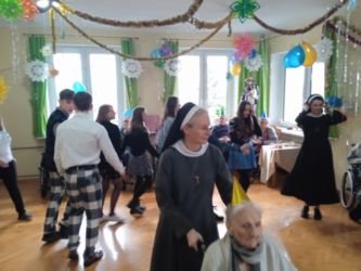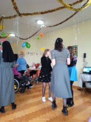 Były tańce, śpiewy w wykonaniu dziewcząt z Pasterze Bożego Narodzenia, kalambury, a Panie Opiekunki i Siostry miały wiele zadań do wykonania, jeśli chciały odzyskać zabrane od nich fanty. Dziękujemy Siostrze Elżbiecie za poprowadzenie naszego balu, Młodzieży z Pasterze Bożego Narodzenia i wszystkim Siostrom Franciszkankom za bycie z nami i wspólną zabawę!!! DZIĘKUJEMY!!!